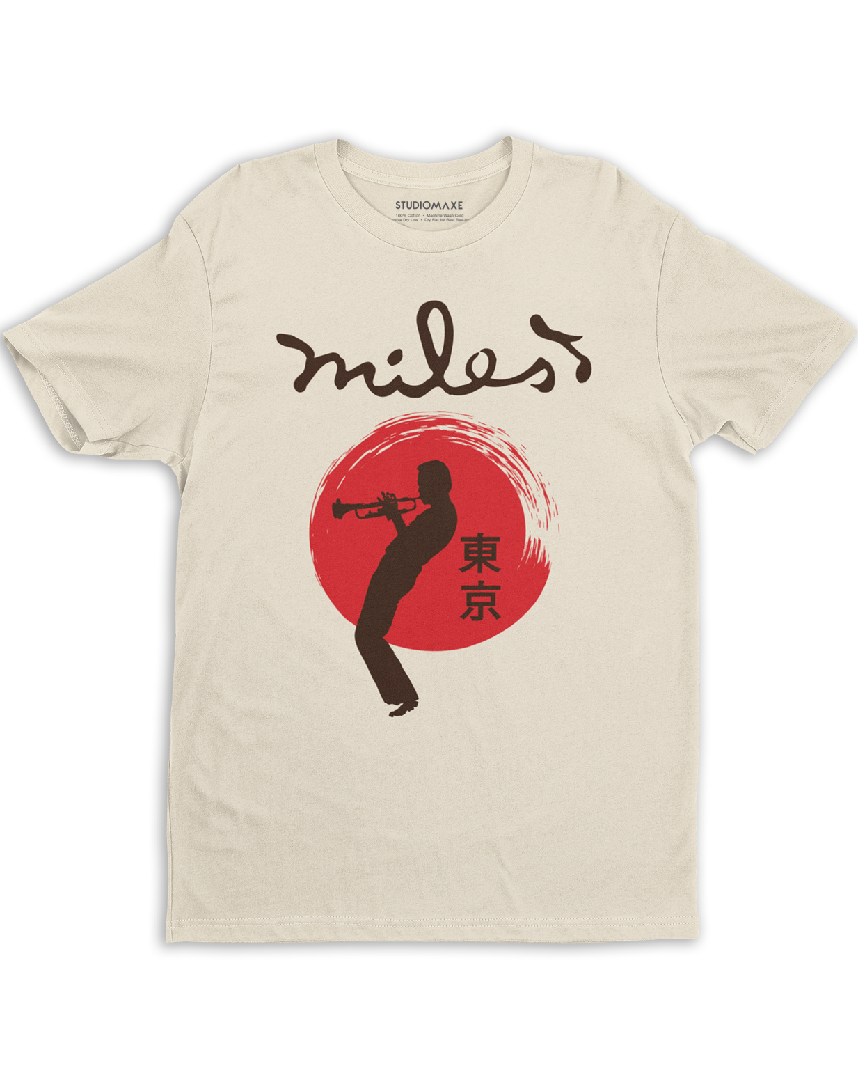 Details: This stylish shirt is designed by Studio Maxe and approved by the Miles Davis family. Details: • Crew Neck • Drop Shoulder Cut • 100% combed ringspun cotton fine jersey • 1x1 baby rib-knit set-in collar Washing Instructions: • Wash in cold water • Turn t-shirt inside out before...